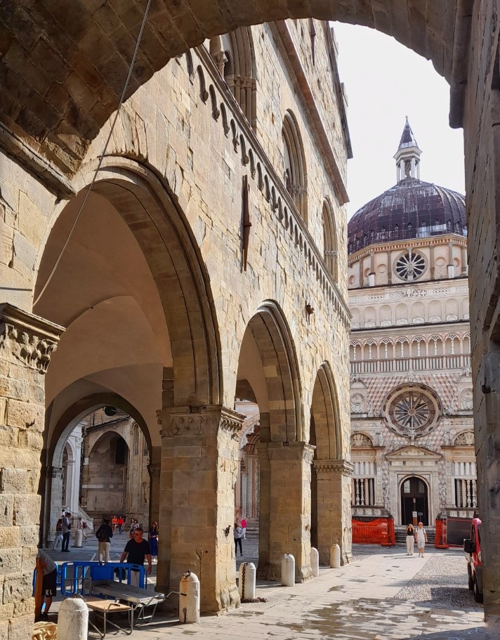 Nuestra primera parada será el Palazzo Terzi, una maravilla del barroco en Bergamo, muy famoso por su romántico balcón sobre Città Bassa; a continuación, nos toparemos con el gran complejo monumental de Santa Maria Maggiore, una basílica del siglo XII construida en estilo románico-lombardo; aunque su interior presenta una fastuosa decoración barroca del 1600. En esta visita tendremos la oportunidad de ver el interior de la iglesia, subir a la torre y ver, en exclusiva, el Tempietto de la Santa Croce, un pequeño edificio románico situado al lado de la basílica que fue construido sobre una interesante planta central.